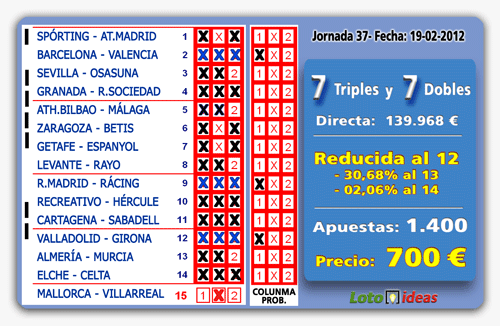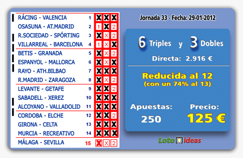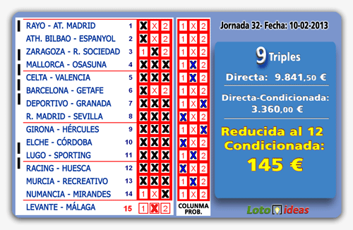 9 triples por 290 apuestas. Reducidos al 12 y condicionados a una serie de aciertos en una columna probable …